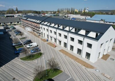 Az 1890-es évek végén épített egykori tűzérlaktanya egy egyszintes épületére építünk kettő új szintet: egy nagyobb belmagasságú emeletet valamit egy tetőteret teraszokkal.