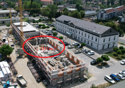 Egyéb projekt jellemzők: Az eladásra kerülő alapterület 2118nm. Az épület külső munkái előrehaladottak. A belső területek megosztása, válaszfalak elhelyezése igény szerint alakítható.