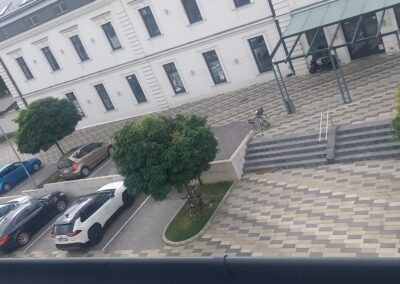 Az épületben három új lépcsőházat építünk, amelyből kettő liftes. Az udvarban 88 térkővel burkolt parkoló kerül kialakításra.